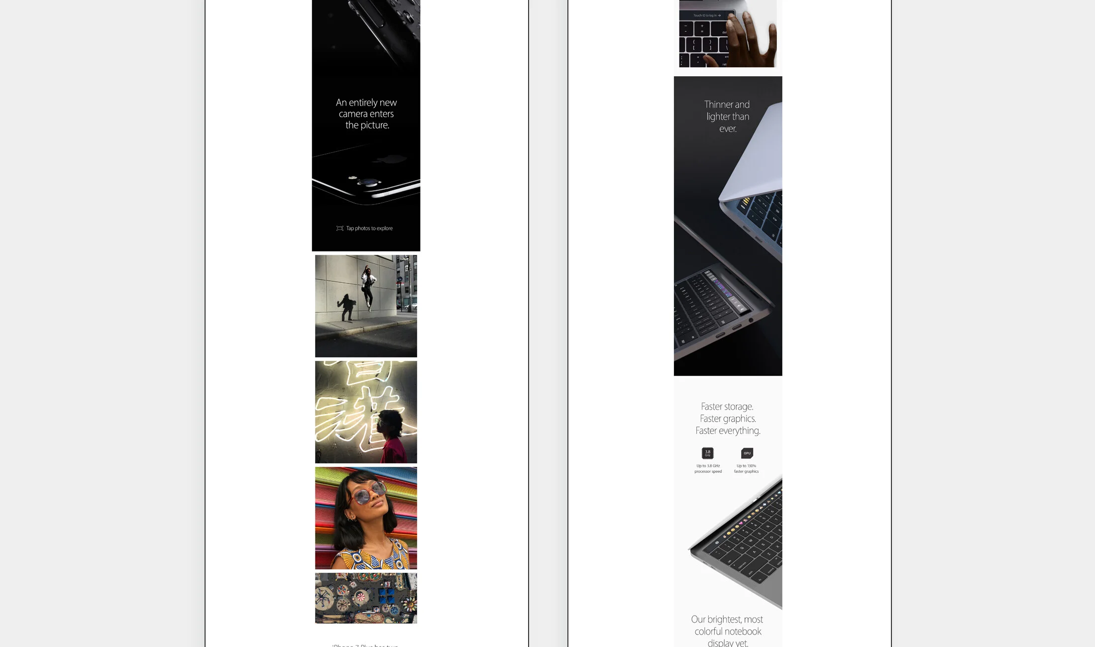 Facebook was kicking off a new feature called Facebook Canvas and they reached out to Apple to help showcase their new tool. I was a part of the Apple team working with Facebook to create these Facebook Canvas campaigns for the launch of iPhone 7, Watch Series 4, and Mac Book Pro.